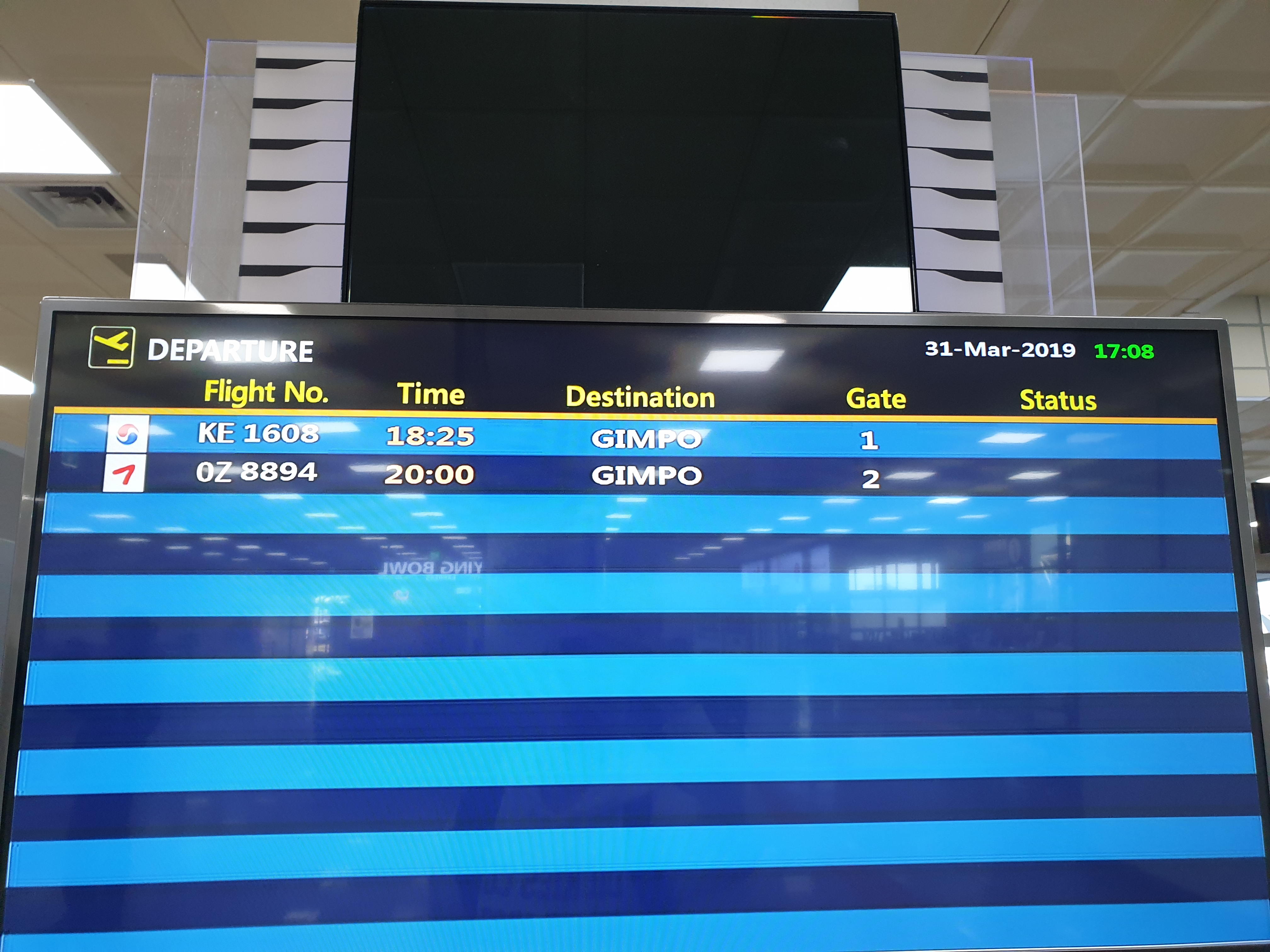 제가 탈 KE1608이 FIDS에 잘 나오는지를 보고 2층으로 올라갔습니다.