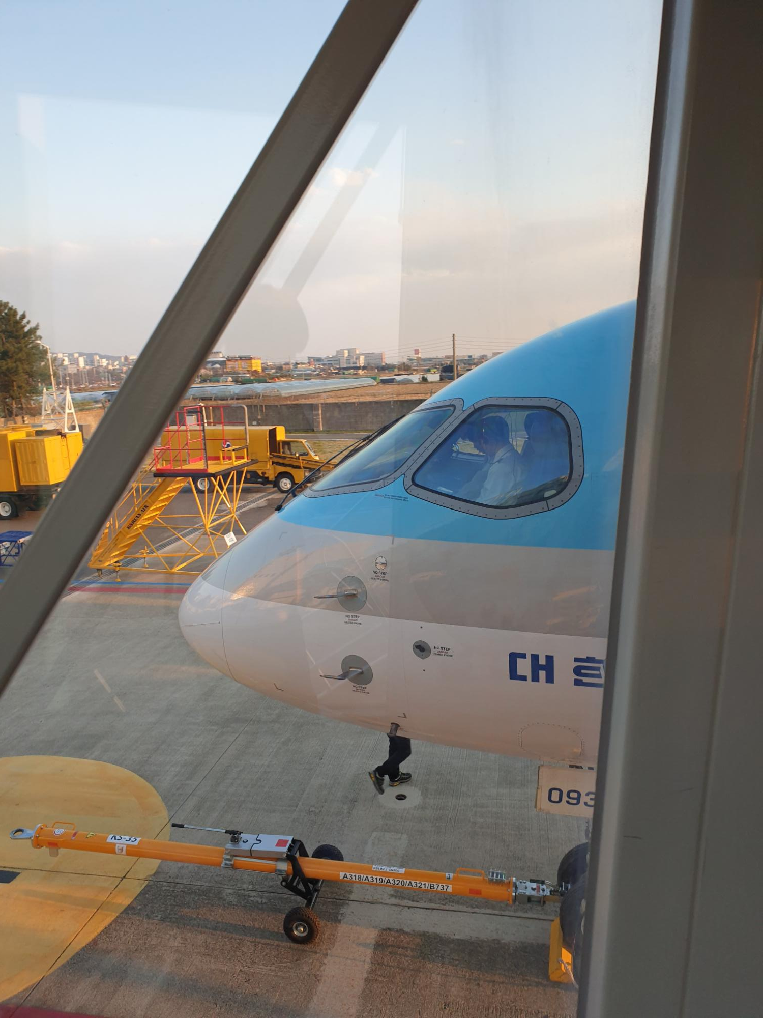 창문 너머로 보이는 기장님들은 김포로 올라갈 준비를 열심히 하고 계신 듯합니다.